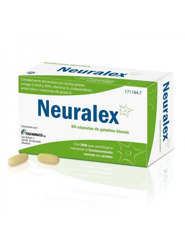 Neuralex, es un complemento alimenticio que contiene Ácidos Grasos Omega 3 (DHA y EPA) que provienen del aceite de pescado, Vitamina D3 (colecalciferol), ácido fólico y vitaminas del grupo B que, en conjunto, contribuyen a mantener el funcionamiento normal del cerebro.