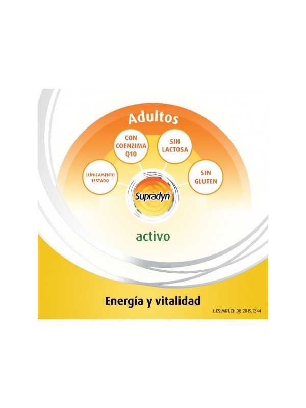 Supradyn Activo es un complejo multivitamínico formulado con vitaminas y minerales (hierro y magnesio) que logran disminuir el cansancio y la fatiga contribuyendo al metabolismo normal. Este complejo multivitamínico está recomendado para estados carenciales de dietas escasas o mala alimentación o en épocas de estrés, ya que en estos casos es necesario un aporte extra de micronutrientes como vitaminas y minerales.