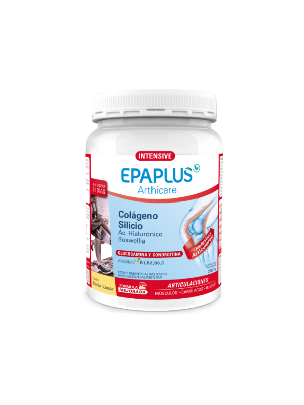 Epaplus Arthicare Intensive Polvo es un complemento alimenticio que ayuda a tus molestias articulares gracias a su contenido en silicio (del extracto de bambú). Además, contiene colágeno, glucosamina sulfato, condroitina sulfato, boswellia serrata, ácido hialurónico, magnesio, vitamina C, B1, B2 y B6.